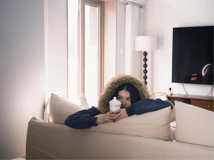 何穗晒出了一组冬日的生活照,她蹲在雪地里拍照,出差的路上一直在喝咖啡,她赤脚躺在沙发里,何穗产后的生活过的很随性舒服,她越来越漂亮了。