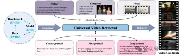 该工作系统性定义了Universal Video Retrieval(UVR),即通用视频检索,包含:
